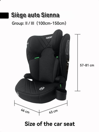 Details: FOR CHILDREN FROM 4 TO 12 YEARS OLD: A car seat for children from 100 to 150 cm (15 to 36 kg). It is installed facing the road with a car seat belt. STANDARD: Car seat compliant with the latest R129 i-Size standard. ECE R129 certification indicates that the seat is safe and complies with the latest standards. The Nania Sienna child booster seat has been tested under rigorous conditions in side and head-on collisions. SAFETY: The Nania car seat is equipped with dedicated safety systems (SPS) and Head-Protect to protect the child as a whole. The SPS or reinforced side protectors protect the child's shoulders and hips. Head-Protect is a headrest that absorbs the energy resulting from an accident. The headrest is adjustable to 12 positions - you can adjust it with just one hand. UNIVERSAL: installation of the 3-point belt is quick and easy. You can install the car seat in any car. Comfortable: the Sienna child seat has a deep, wide seat covered in EPE foam, which absorbs shocks and ensures that your child sits comfortably. Comfort is also ensured by comfortable armrests that keep the belt in the right position. It also has a contoured backrest and the cover is removable and washable. Supplied with a flexible cup holder.
